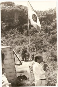 Dei-me mal com as bandeiras em Chapada ( foto 2) e no morro de Santo Antonio. Aquele à vista ao se aterrizar no aeroporto Marechal Rondon. Essas bandeiras foram feitas em São Paulo sob medida. Enormes. Mas, o vento as destruíam.